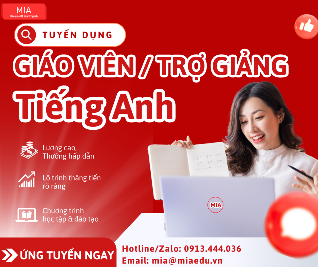 [TUYỂN DỤNG THÁNG 8] – GIA NHẬP NGAY ĐỘI NGŨ MIA! Vị trí cần tuyển: 02 Giáo viên tiếng Anh 02 Trợ giảng tiếng Anh Lương cứng: 8 – 12 triệu/tháng (tùy năng lực) Phúc lợi: BHXH đầy đủ, môi trường trẻ trung – năng động – chuyên nghiệp Cơ hội được đào tạo & […]